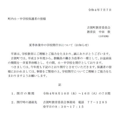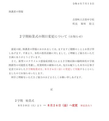 教育委員会より通知がありましたのお伝えします。